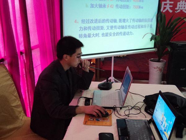 會議由榆林滕科機械設備銷售有限公司副總經(jīng)理于連星主持,滕科公司云偉總經(jīng)理做了關(guān)于公司發(fā)展前景和下一步具體規(guī)劃的報告。廈門裝載機(包頭)有限責任公司王曉忠總經(jīng)理代表廈裝公司為大會致了熱情洋溢的賀詞,王總精彩的講話博得了與會者的一片掌聲。劉慶雙處長對公司各種型號產(chǎn)品的技術(shù)講解,會場上不停的播放廈裝宣傳片,使參加會議人員對我公司的產(chǎn)品有了很大的了解和認同,進一步提高了廈裝產(chǎn)品的知名度。