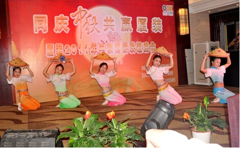 隆隆鼓聲拉開(kāi)了晚會(huì)的序幕,伴隨著掌聲、歡呼聲,現(xiàn)場(chǎng)嘉賓和全體“廈裝”同仁的熱情一浪高過(guò)一浪。主持人幽默詼諧,員工熱情高昂,晚會(huì)各部分在“同慶中秋、共贏廈裝”的主題引導(dǎo)下,將豐富有趣的“廈裝”企業(yè)文化問(wèn)答、滑稽的小丑魔術(shù)表演、驚險(xiǎn)的雜技及古典的青花瓷舞蹈表演等等串聯(lián)在一起,柔媚的燈光,熱情的音樂(lè),整個(gè)會(huì)場(chǎng)顯得格外輕松愉悅,熱情洋溢。